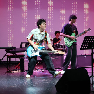 At the end of the concert, guests -- including school staff, parents, and other students -- were invited to perform if they wished. They were treated to a special performance with Academic Director Mr. Julien Ferrandon and Operations Officer Mr. Nelson Celis on the microphones, accompanied by Head of Administration Mr. Volker Ross on the drums!