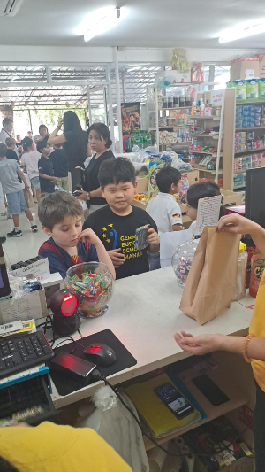 The highlight of the visit was purchasing materials for their class projects. Working in teams with a set budget, students compared prices, discussed priorities, and selected items for making play dough and volcano models. This practical exercise strengthened their understanding of budgeting, collaboration, and responsible spending.