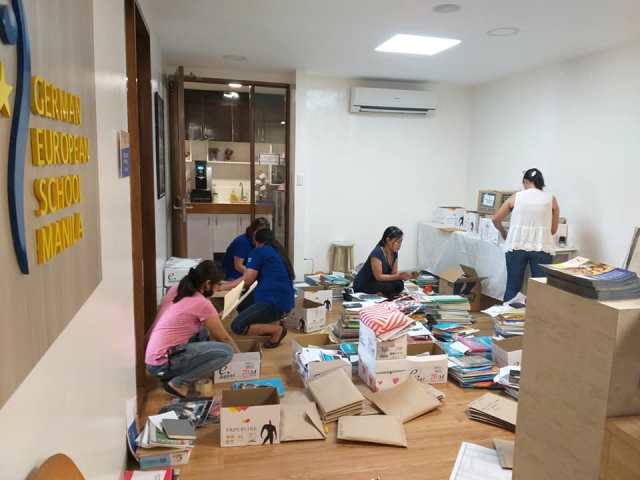 Die meisten Bücher unserer Schülerinnen und Schüler befanden sich in der Schule. Neben den Büchern lagen da Stapel von Arbeitsheften, Ordnern und Notizblöcken in den Klassenräumen.