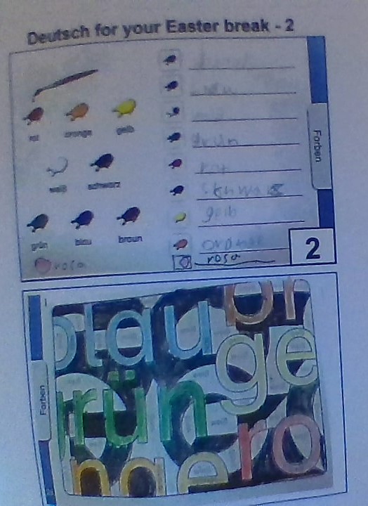 Some primary German students spent their Easter holidays taking on the first ever "German Challenge" of their life. "The German Challenge" is a particularly challenging set of 6 worksheets with tasks that these German learners have never practiced before. However, most students gladly accepted the challenge and successfully mastered it, as can be seen in the pictures below. In the end, each successful student received a prize and through this Easter project everyone got better at German. Below are pictures by different students of each of the 6 worksheets: