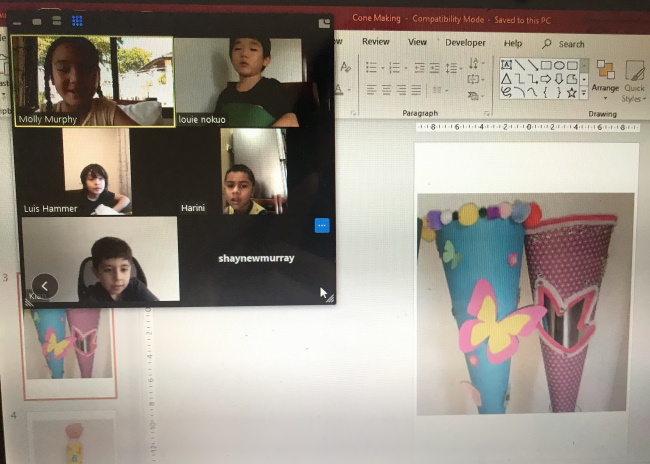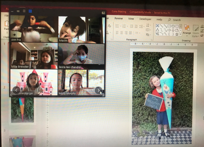 Who likes treats and surprises? We definitely do! The Sea Turtles class had a Zoom meeting all about “Cone Making” or “Schultüte.” The first day of first grade is a turning point in the life of every child and family. What a great way to celebrate it by giving the incoming first graders school supplies and treats inside a cone. We sent cones to their homes to decorate with their family. It gives us great joy that they are all excited to embark on to the next adventure of their schooling years.